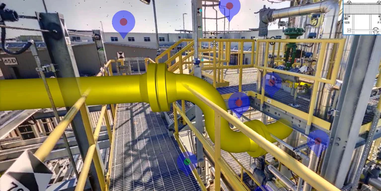 流程工业在监管合规性、运营效率和安全管理方面面临着巨大挑战。NavVis数字孪生技术与三维数据管理平台提供的企业级现实捕捉服务相结合,通过准确、最新的空间数据以及便捷的访问和协作,提供了强大的解决方案。可随时通过网络浏览器或移动设备访问数字孪生系统,实现: